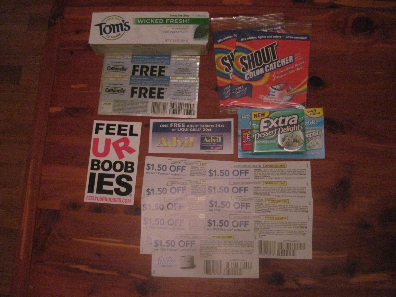 Here is my mail for the week. I am excited about my Extra Mint Chocolate Chip gum. The Febreeze coupons I won in a giveaway and when I signed up for the Cottonelle wipes you had to send it to a friend so I sent it to DB.